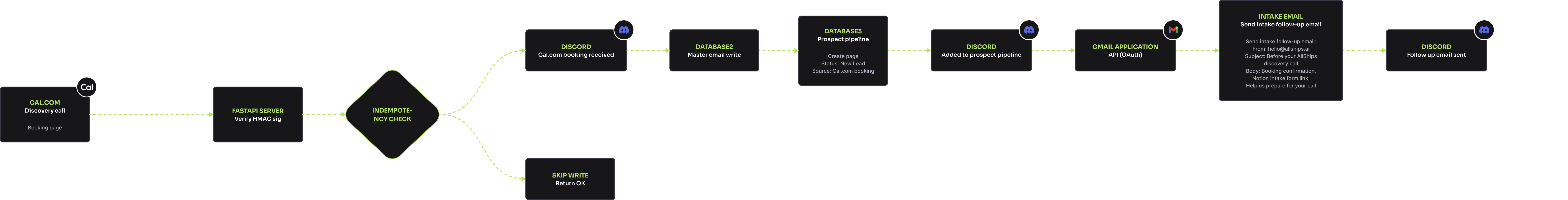 Everything had to come together at once. The brand had to speak to business owners who are stretched thin and skeptical of hype. The website had to make a complex offering feel approachable. The infrastructure had to be production-grade from day one — this isn't a demo, it's the system I run my business on. The pieces of a system either reinforce or undermine each other. A website that promises simplicity but requires a ten-minute onboarding call is a broken promise. An automation that works perfectly but can't be observed is a liability. Everything had to be honest — marketing, engineering, and experience telling the same story. There was also a strategic dimension. I positioned AllShips as a generalist consultancy on purpose — to get close to different business types, learn their problems firsthand, and discover which verticals are worth going deeper on. The underlying infrastructure is intentionally industry-agnostic. AllShips is both a business and a research vehicle.